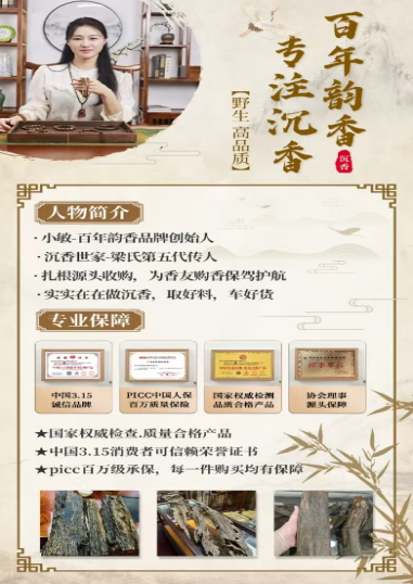 百年韵香品牌,我从创立至今已有19年,一直致力于天然正宗野料沉香,常年流转于各国一线产区源头收料,每一款料子都亲自过手确保质量,并以源头批发供货价给到香友们,让香友们也能真正体验一线产区质量沈香,同时承诺支持全国复检。假一赔十。